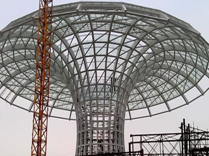 二、球形网架结构因其结构新颖,受力合理,自重轻、用钢量低等优点。如大型体育场馆球形清远螺栓球网架、公共场馆球形网架、电厂清远螺栓球网架、水泥工业球形网架、仓储物流球形网架、清远干煤棚工业球形网架、清远收费站清远加油站球形网架、展览中心、影剧院、商场、航站楼、候车厅、工厂清远车间、仓库、电视塔等球形螺栓球节点网架。国内球形网架结构主要分为:清远焊接球节点网架及螺栓球节点网架两种。螺栓球节点网架其构件工厂内加工量较大,现场安装便捷,适用于现场工期紧,清远施工条件、用电量受制约,网架形状复杂、清远杆件定位困难的异形结构。螺栓球节点球形网架系统基本由清远杆件、螺栓球、支撑支座等组成。按照节点形式可分为交叉清远桁架体系、四角锥体系、三角锥体系等。支撑方式多为固定支座支撑。对于大面积、大跨度及有特殊受力或伸缩要求的网架结构可采用橡胶支座、滑移支座、球铰支座等支撑形式,以满足结构自身的受力稳定、均衡,便于内力释放等设计要求。